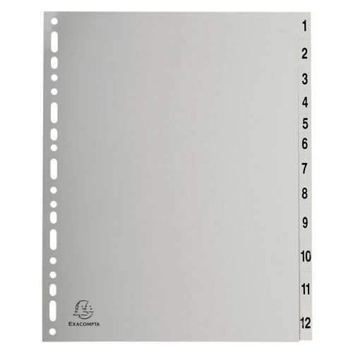 | Descrizione | Intercalari numerati pp grigio 12 posizioni A4 Maxi, N. di divisioni: 12, Colore: Grigio |
