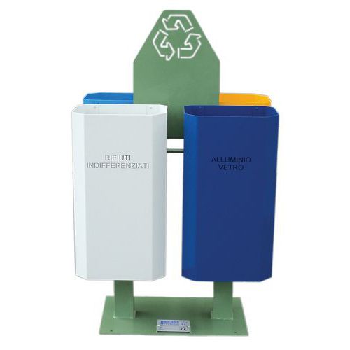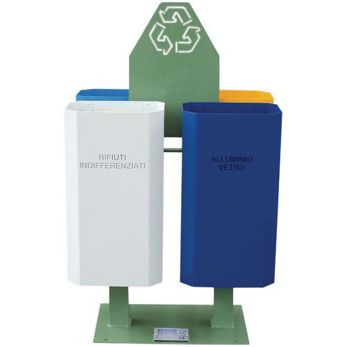 | Descrizione | Isola ecologica con 4 cestini, Capacità: 90 L, Materiale: Acciaio, Larghezza: 565 mm, Lunghezza: 765 mm |