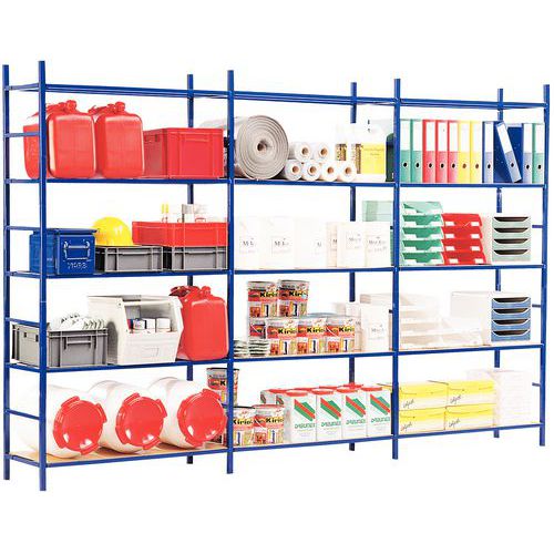 | Descrizione | Kit 3 scaffalature Startub, Carico max. per ripiano: 180 kg, Altezza: 1800 mm, N. di ripiani: 15 |