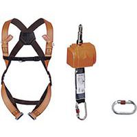 - Kit progettato specificamente per la manutenzione di impianti industriali con imbracatura, moschettone, anello di ancoraggio e anticaduta a richiamo automatico con cinghia.
