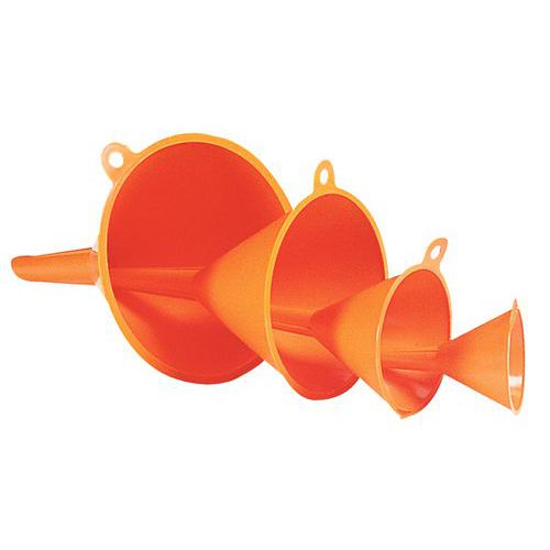 | Descrizione | Kit di 4 imbuti in polietilene, Ø totale: 50 mm 75 mm 100 mm 120 mm, Capacità: 0.05 L 0.09 L 0.25 L 0.27 L |