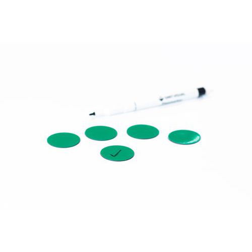 | Descrizione | Kit di 5 magneti tondi verdi, Colore: Verde, Larghezza totale: 50 mm, Ø: 50 mm, Larghezza: 50 mm |