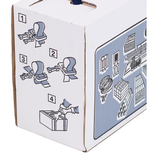 | Descrizione | Kit di reggiatura PP blu, Reggia, lunghezza: 600 m, Larghezza Reggia: 12 mm |