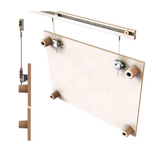 - Permette il fissaggio su guide con clip o guide sul soffitto.