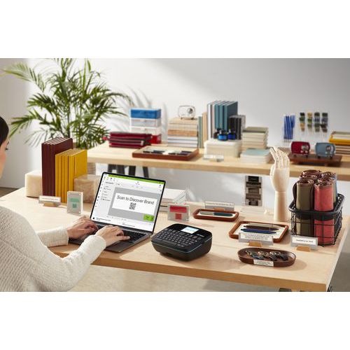 Kit etichettatrice LabelManager® Executive LM640 CB Azerty, professionale e multiuso. La macchina è compatibile con le etichette D1 Standard e Durable con larghezza di 6, 9, 12, 19 o 24 mm. Portatile senza sforzo grazie a una batteria agli ioni di litio ricaricabile. Design a basso ingombro con dimensioni compatte e una superficie testurizzata per una presa ergonomica. LM640 è dotata di schermo grande ad alta risoluzione per una facile lettura. Doppia connettività tramite presa USB-C e tecnologia Bluetooth® Low Energy che rende superfluo accoppiare gli apparecchi.