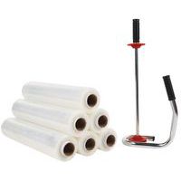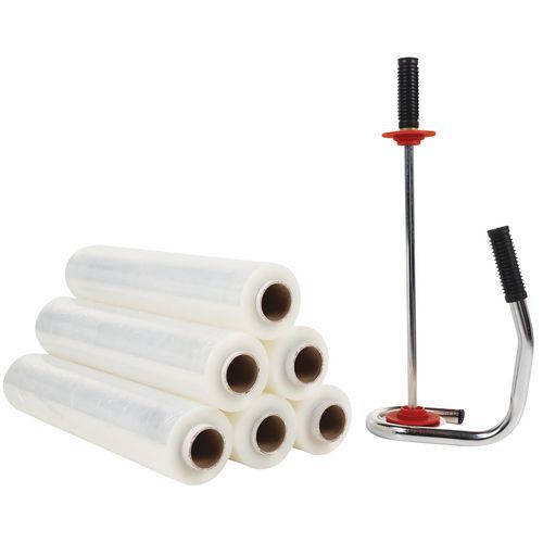 | Descrizione | Kit film estensibile trasparente con svolgitore metallico, Spessore: 20 µm, Lunghezza: 300 m |