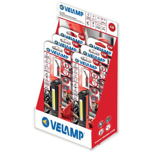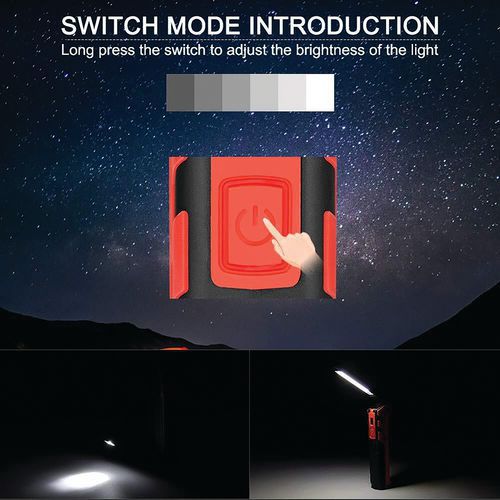 Lampada con magnete potente e gancio di sospensione, per il fissaggio su una superficie metallica o per ripiegarla lasciando le mani libere per eseguire altri lavori.