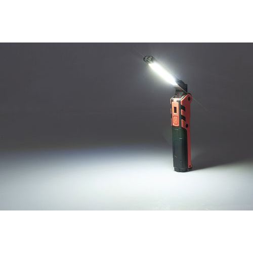 Lampada da lavoro 2 in 1 dal design compatto per illuminare ampie aree.