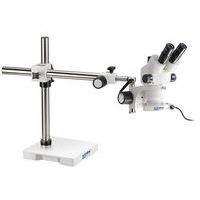 Kit per microscopio stereo OZM 91 predefinito con braccio telescopico e illuminazione ad anello led 4,5 W per la massima flessibilità. L'obiettivo zoom permette ingrandimenti continui da 7x - 45x. Il supporto del braccio telescopico consente di adattare l'altezza al campione. Una colonna estensibile supplementare sull'asse orizzontale del braccio telescopico garantisce una portata supplementare.