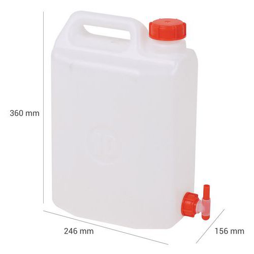 Ermetica e igienica con tappi (x2) e rubinetto. Facile da riempire.