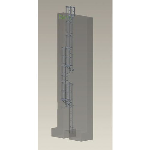 | Descrizione | Kit scala a gabbia completo, Materiale: Alluminio, Altezza: 13.75 m, Altezza min.: 13750 mm |