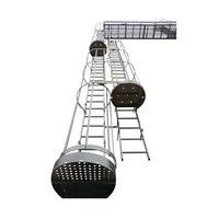 Scala con gabbia di protezione adattabile a tutte le sagome degli edifici. Lega di alluminio: ottimo rapporto portata/peso. Assemblaggio e posa in opera semplici e rapidi. Anticorrosione, facilità di manutenzione. Scala con intervallo tra le barre 280 mm . Uscita frontale con gabbia, larghezza 1300 mm.