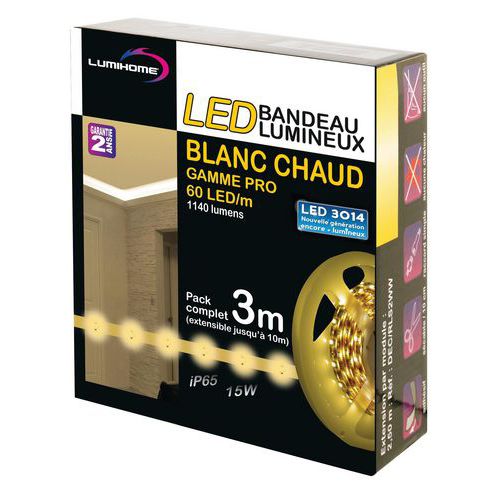 | Descrizione | Kit striscia bianco caldo 180 LED SMD 3014, Flusso luminoso: 480 lm, Tecnologia: LED, Potenza: 6 W |