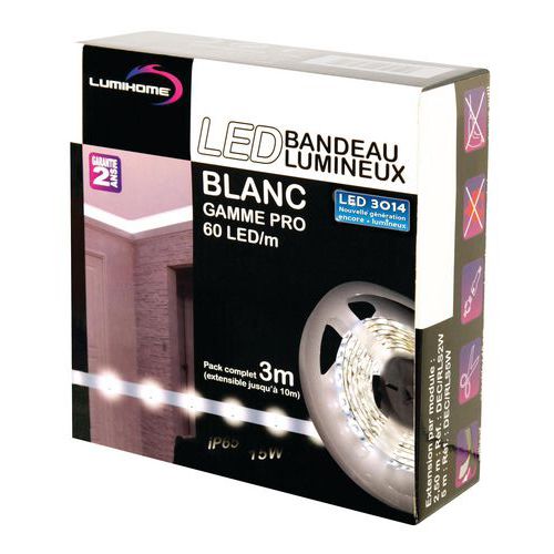 | Descrizione | Kit striscia bianco freddo 180 LED SMD 3014, Flusso luminoso: 540 lm, Tecnologia: LED, Potenza: 6 W |