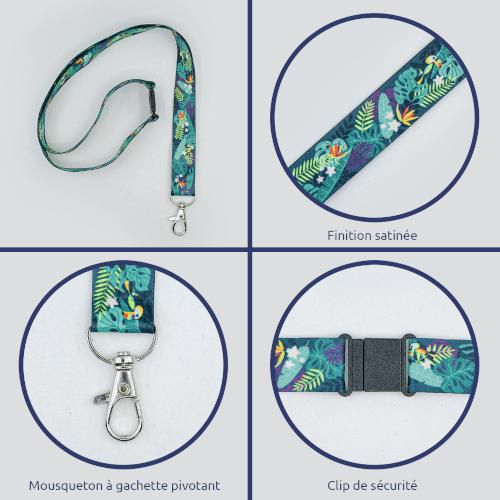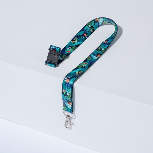 Laccetto Avery satinato, largo e piatto, morbido al tatto e comodo da indossare. Moschettone standard girevole. La clip di sicurezza si stacca in caso di trazione eccessiva per evitare il rischio di strozzamento.