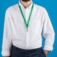 Laccetto Avery satinato, largo e piatto, morbido al tatto e comodo da indossare. Moschettone standard girevole. La clip di sicurezza si stacca in caso di trazione eccessiva per evitare il rischio di strozzamento.