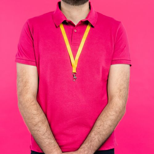 Laccetto Avery satinato, largo e piatto, morbido al tatto e comodo da indossare. Moschettone standard girevole. La clip di sicurezza si stacca in caso di trazione eccessiva per evitare il rischio di strozzamento.