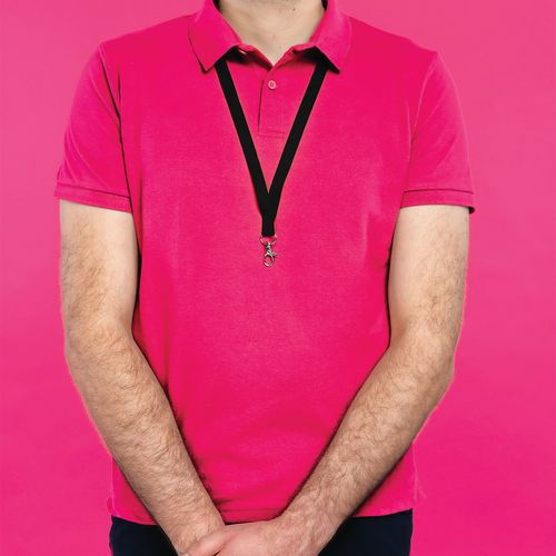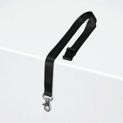 Laccetto per badge riciclato con moschettone, Colore: Nero, Imballaggio riciclabile: Si - 100% Laccetto per badge riciclato con moschettone, Colore: Nero, Imballaggio riciclabile: Si - 100%