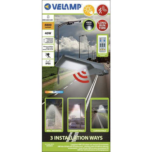 Lampada a energia solare 40 W con sensore di movimento - Velamp