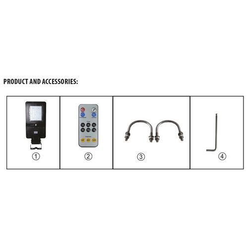 Con rilevatore di movimento: la lampada si ricarica durante la giornata e si illumina automaticamente la notte. Modalità di funzionamento: 1) illuminazione costante: la lampada si illumina automaticamente la notte e mantiene costantemente il 60% della luminosità per 4 ore, quindi passa alla modalità sensore di movimento. 2) Sensore di movimento: la lampada si illumina automaticamente al 100% della luminosità quando viene rilevato un movimento in un raggio di ≤ 12 m, quindi diminuisce al 30% una volta trascorsi 20 secondi senza aver rilevato alcun movimento.