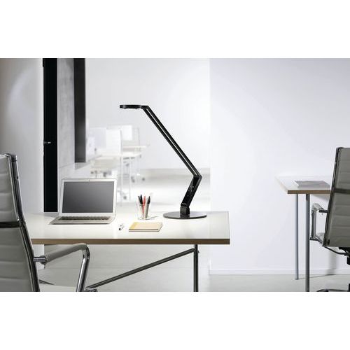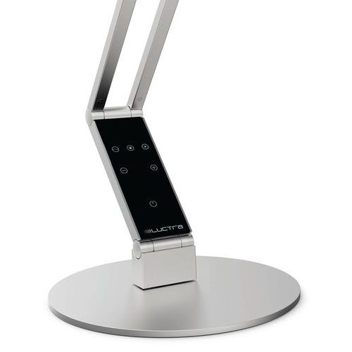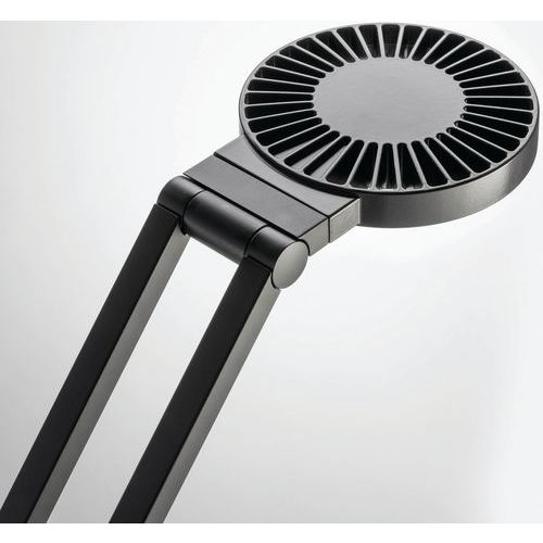 Lampada da ufficio a led ad elevate prestazioni: illuminazione biodinamica con sistema brevettato Vitacore®. Ottimizzazione del comfort visivo con livello di illuminazione regolabile fino a 1000 lux. 3 livelli di temperatura del colore: 2700, 3600 e 6500 K. Colore da bianco caldo rilassante a bianco freddo energizzante. Cerniere autobloccanti per non far cadere la lampada. Lampada con testa circolare, corpo in alluminio e base in acciaio. Lampada da ufficio a led su supporto a base rotonda. Durata superiore a 50.000 ore. Distribuzione luminosa simmetrica. Classe energetica A++. Flusso luminoso: 680 lm.