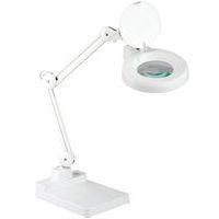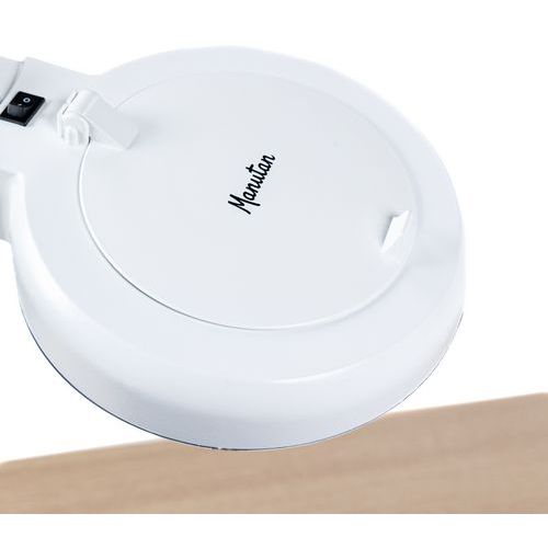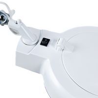 - Lampada circolare con lente d'ingrandimento e braccio articolato a regolazione manuale.