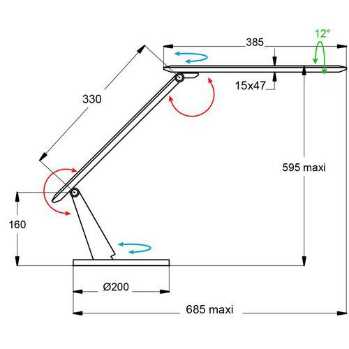 Lampada da scrivania con testa inclinabile in avanti e indietro.