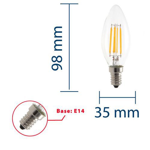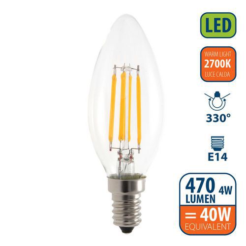 Lampadina a filamento a led a candela C35 4 W attacco E14, Flusso luminoso: 470 lm, Tipo d'attacco: E14