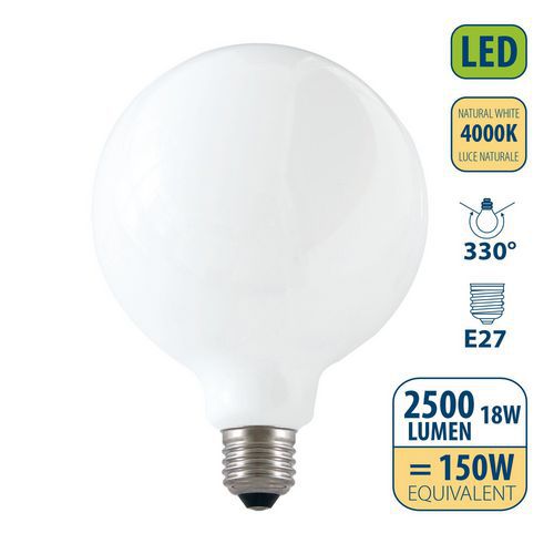 Lampadina a filamento a led opalizzata 18W globo G125 E27, Flusso luminoso: 2500 lm, Tipo d'attacco: E27