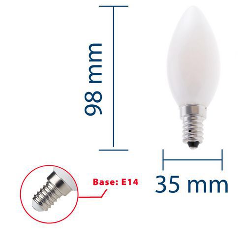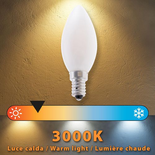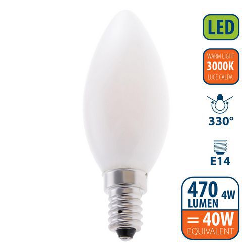 Lampadina a filamento a led opalizzata a candela C35 4 W attacco E14, Flusso luminoso: 470 lm