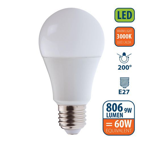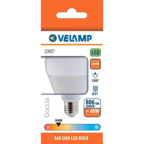 Lampadina a led SMD standard A60 9 W attacco E27 - Velamp