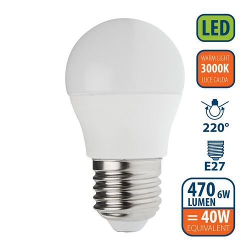Lampadina a led SMD tipo a minisfera P45 6 W attacco E27, Flusso luminoso: 470 lm, Tipo d'attacco: E27