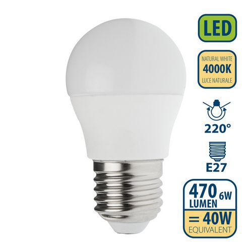 Lampadina a led SMD tipo a minisfera P45 6 W attacco E27, Flusso luminoso: 470 lm, Tipo d'attacco: E27