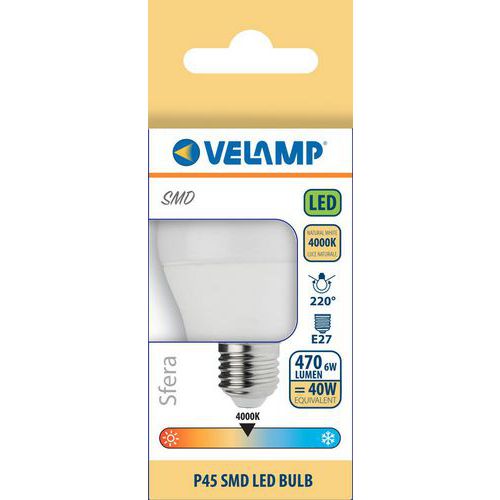 Lampadina a led SMD tipo a minisfera P45 6 W attacco E27 - Velamp