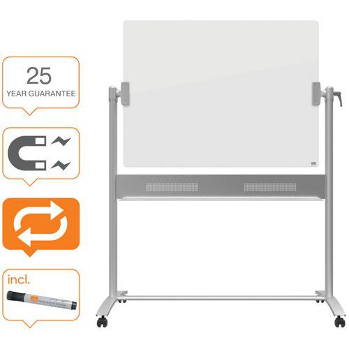 | Descrizione | Lavagna bianca girevole mobile in vetro bianco brillante, Superficie di scrittura: Bicchiere, Altezza: 90 cm |