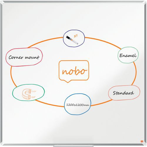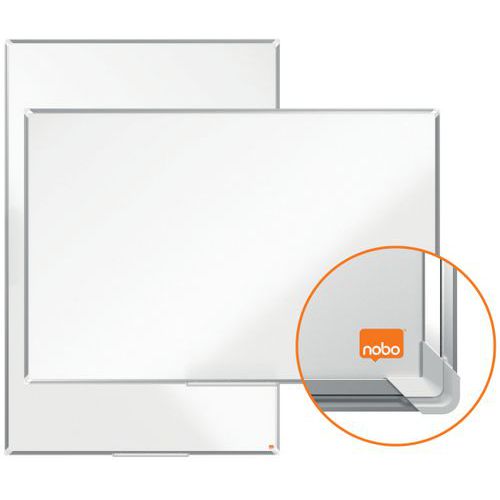 Lavagna in acciaio laccato Premium Plus. Superficie in acciaio laccato magnetico con cornice moderna in alluminio. Un'ampia vaschetta consente di tenere tutto in ordine, pennarelli, cancellini o altri accessori. Buon livello di cancellabilità per utilizzi frequenti.