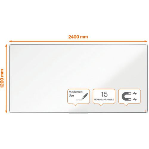 Lavagna in acciaio laccato Premium Plus. Superficie in acciaio laccato magnetico con cornice moderna in alluminio. Un'ampia vaschetta consente di tenere tutto in ordine, pennarelli, cancellini o altri accessori. Buon livello di cancellabilità per utilizzi frequenti. Magnetico