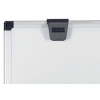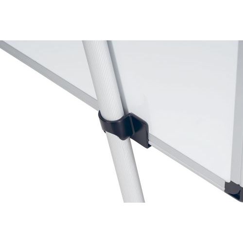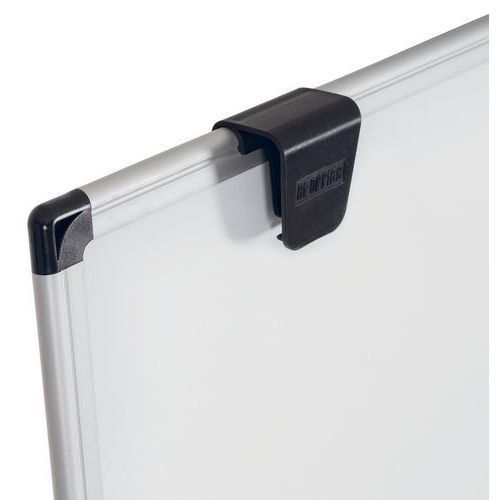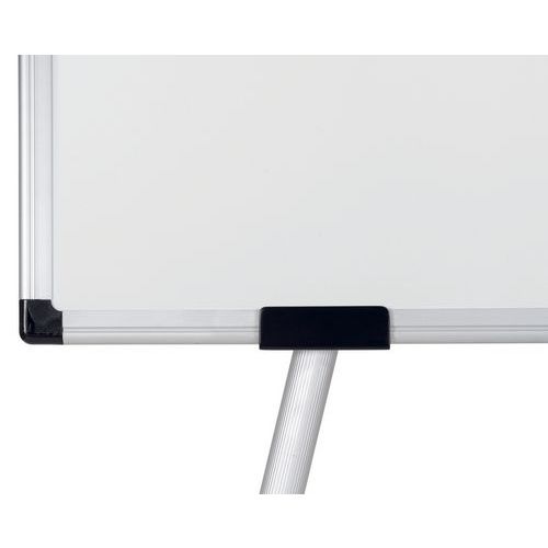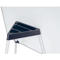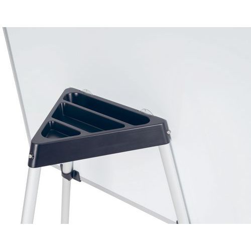 Comprende i ganci regolabili per blocchi di carta per lavagne portablocco e un ripiano portaoggetti in plastica per accessori sul retro della lavagna.