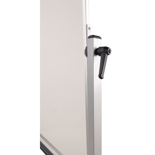 Lavagna girevole a 360° con doppia superficie. Facile movimentazione tramite rotelle girevoli. Multi-posizione grazie all'impugnatura di serraggio e al sistema indicizzato. Altamente resistente ai graffi, ai batteri e ai prodotti chimici. Assemblaggio rapido.
