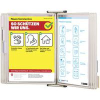 Composizione: - 1 elemento da parete (grigio chiaro o inox) - 10 buste con perno girevole - 5 linguette di classificazione (inserti trasparenti/colorati) - Fissaggio su parete (viti, tasselli e distanziali)