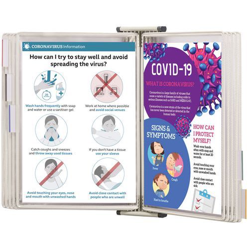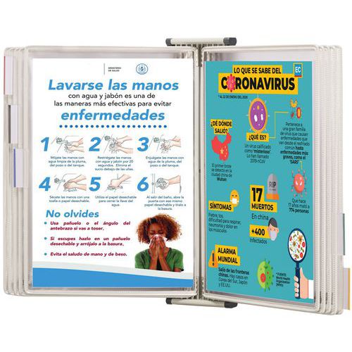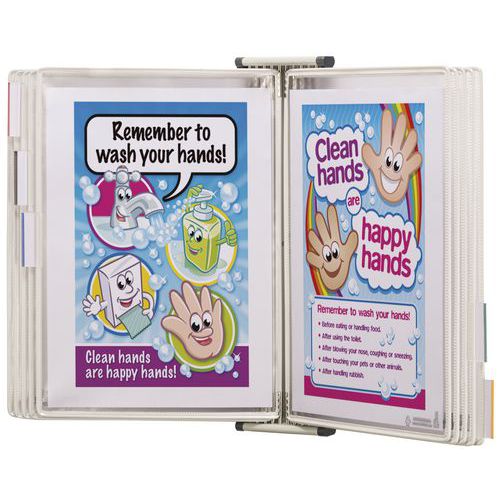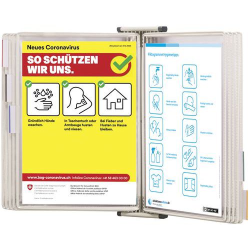 Kit da parete antimicrobico con perno girevole per la consultazione di documenti con la massima igiene.