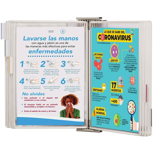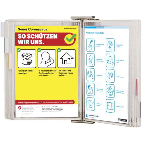 Kit da parete antimicrobico con perno girevole per la consultazione di documenti con la massima igiene.