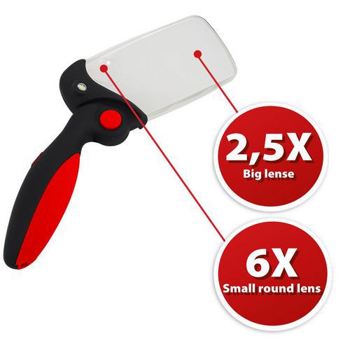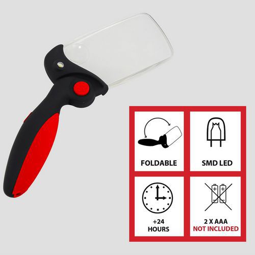 Lente d'ingrandimento x6 con illuminazione a led Velamp dotata di impugnatura pieghevole.