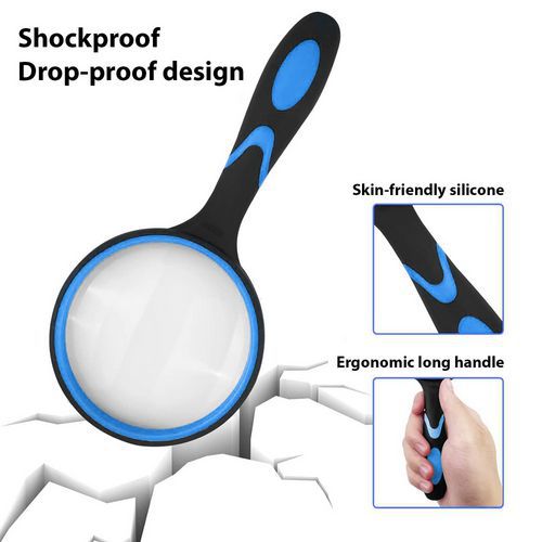 Obiettivo grande, ampio campo visivo: l'obiettivo gigante da 100 mm offre un campo visivo più largo degli obiettivi classici che consente di visualizzare maggiore contenuto e di ridurre l'affaticamento oculare. Ingrandimento effettivo 6X, lente in vetro di qualità ottica e trasparente, alta precisione, resistente all'usura e ai graffi. Per visualizzare immagini eccellenti senza distorsione. L'impugnatura è in gomma antiscivolo: gradevole al tatto, morbida e comoda. Inoltre, la lente è ben equilibrata per evitare di affaticare il polso. La struttura rinforzata garantisce un'eccellente stabilità della lente: non trema e non si muove.