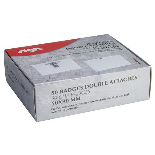 | Descrizione | Lotto da 50 badge a doppia clip |