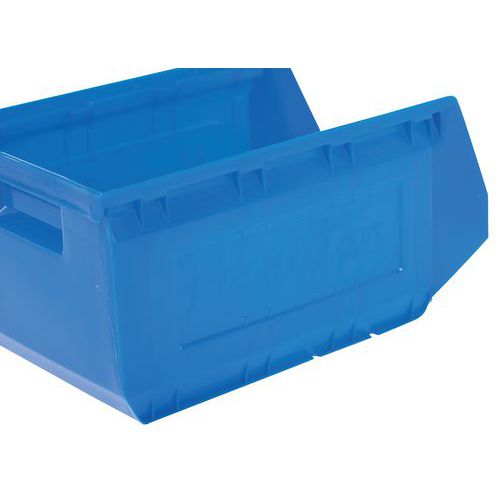 Bordi con piedini di blocco per una maggiore stabilità all'impilaggio. Grande robustezza grazie alle nervature laterali. Fondo piatto e antiscivolo per una facile presa. Presa eccellente grazie alla maniglia anteriore. Contenitore in plastica ad alta resistenza agli urti. Facile identificazione grazie al porta-etichetta.