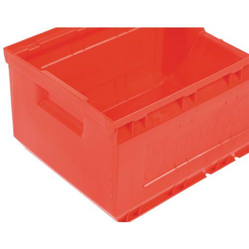 Bordi con piedini di blocco per una maggiore stabilità all'impilaggio. Grande robustezza grazie alle nervature laterali. Fondo piatto e antiscivolo per una facile presa. Presa eccellente grazie alla maniglia anteriore. Contenitore in plastica ad alta resistenza agli urti. Facile identificazione grazie al porta-etichetta.