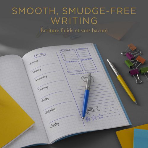 Prestazioni di scrittura uniformi e omogenee grazie all'inchiostro e all'inchiostro gel di Parker. Il pacchetto di ricariche Discovery di Parker Jotter London presenta l'iconico Union Jack ed è ispirato al patrimonio britannico e ai monumenti della capitale. Include tre ricariche Quinkflow per penne a sfera con punta media (2 inchiostri blu e 1 inchiostro nero) e tre ricariche di inchiostro gel Quink con punta media (2 inchiostri neri e 1 inchiostro blu). Ogni ricarica Parker è progettata per fornire un flusso affidabile di inchiostro ad asciugatura rapida, con meno macchie e per garantire una scrittura impeccabile.