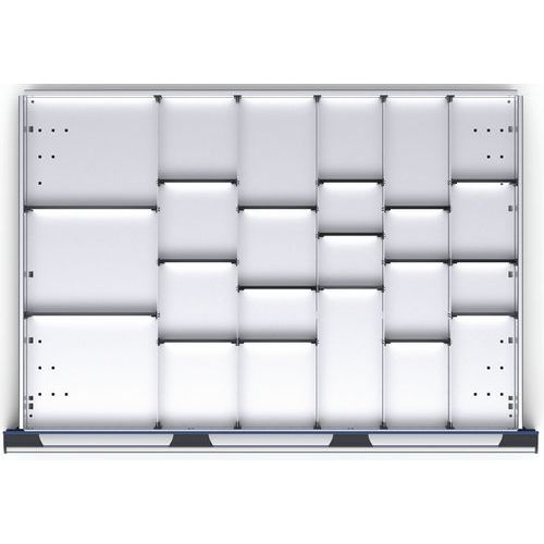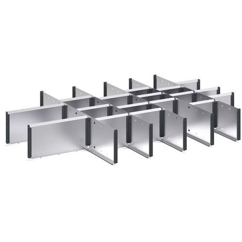 Lotto di separatori rigidi per suddividere il cassetto in maniera flessibile. Potete personalizzare la disposizione degli scomparti grazie ai separatori e agli intercalari rimovibili.