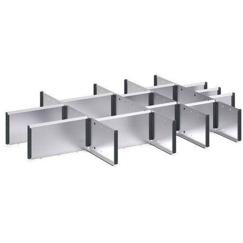 | Descrizione | Lotto di separatori per armadio da officina XL Bott, Tipo di suddivisione: 2 separatori, 7 intercalari |